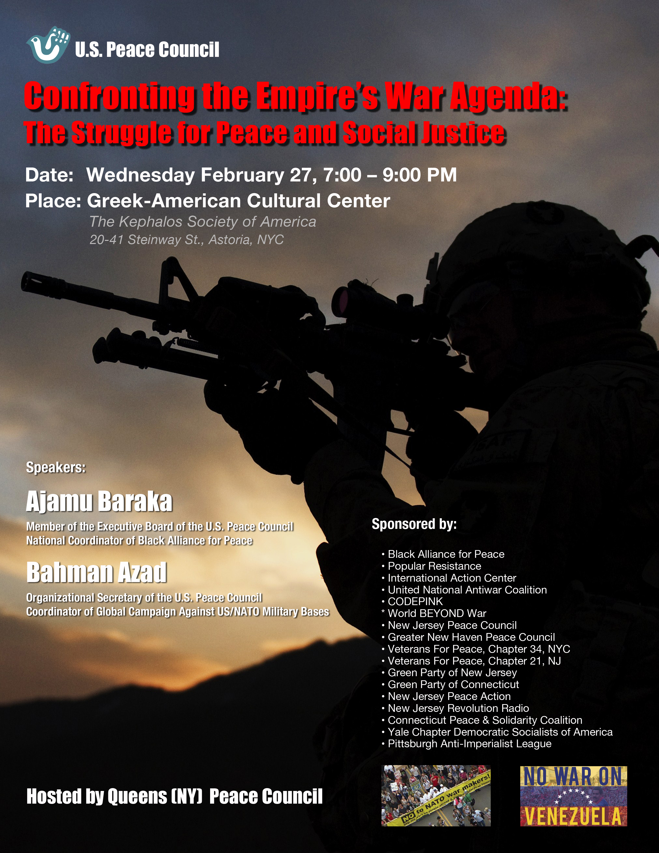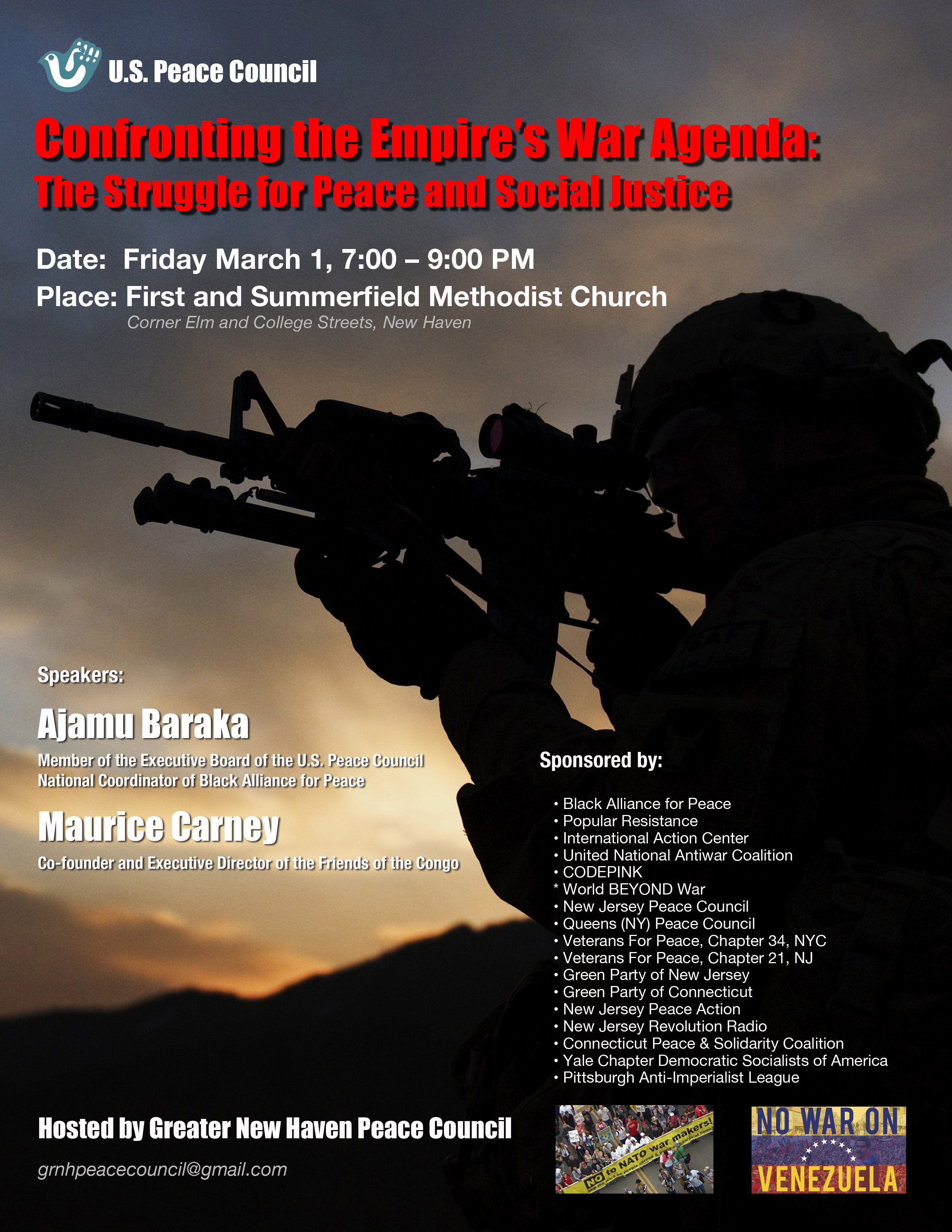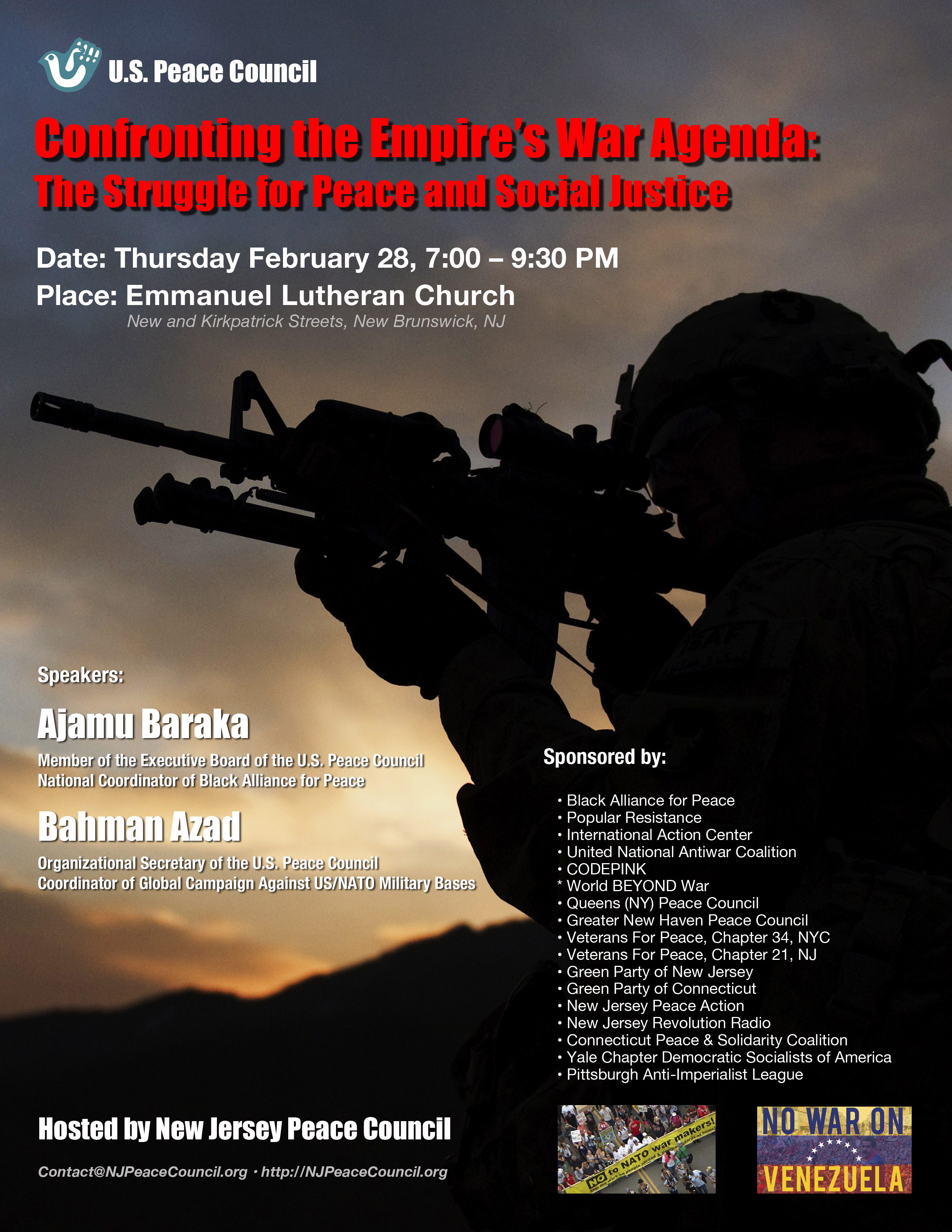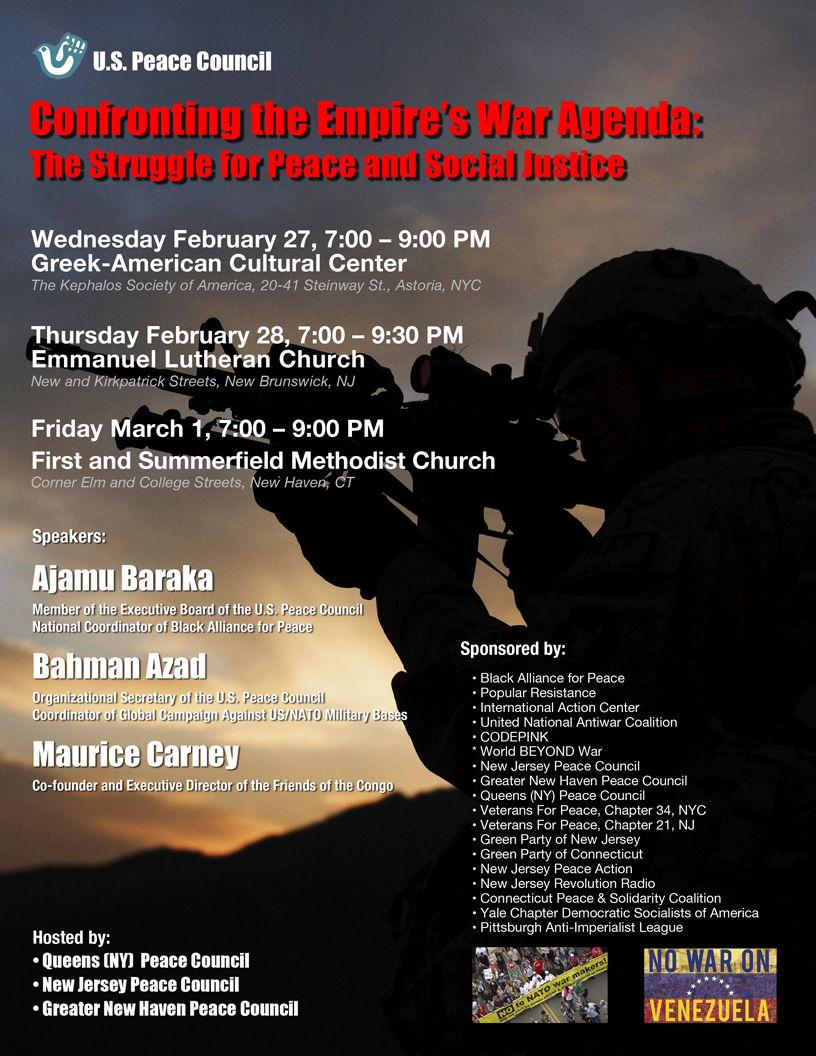 U.S. Peace Council has organized a speaking tour for Ajamu Baraka, member of the Executive Board of the USPC and National Coordinator of Black Alliance for Peace.