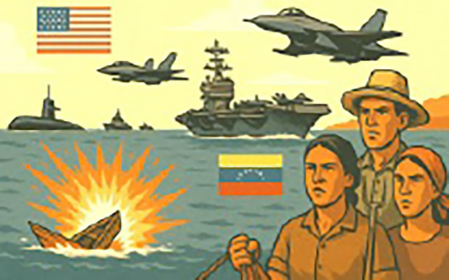 The U.S. Peace Council, joining dozens of anti-war organizations, calls you to take urgent action — create and join rallies, street meetings, vigils, speak-outs, teach-ins, sign holding and banner drops – to demand the U.S. end its ongoing murder of Latin American boaters and threats to bomb and invade Venezuela and overthrow its legitimate government.